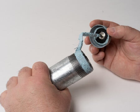 Before applying sealant, make sure the male threads are clean and dry. Using a clean cloth or a wire brush, remove rust, scale, old compound, or tape. Proper cleaning ensures the compound fills the entire root of the thread.