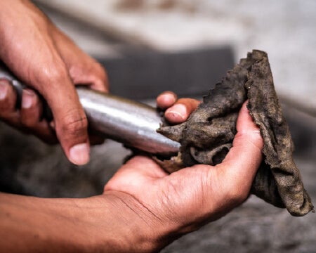 If you need to rework a joint, wipe away excess sealant with a rag. A wire brush can help remove material from between threads. Soap and water or a vinegar-and-water mixture can be used to finish cleaning before reassembly.