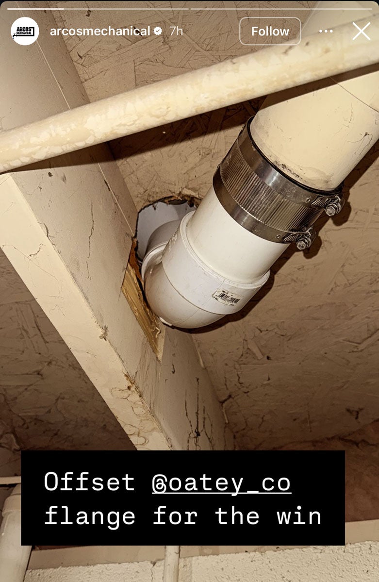 Since starting his career, Arcos has trusted Oatey products for their consistent quality and reliable performance. One of the standout items in his toolbox is the Oatey® Offset Closet Flange, which he now regularly uses for complex toilet installations in remodeling and new-construction applications.